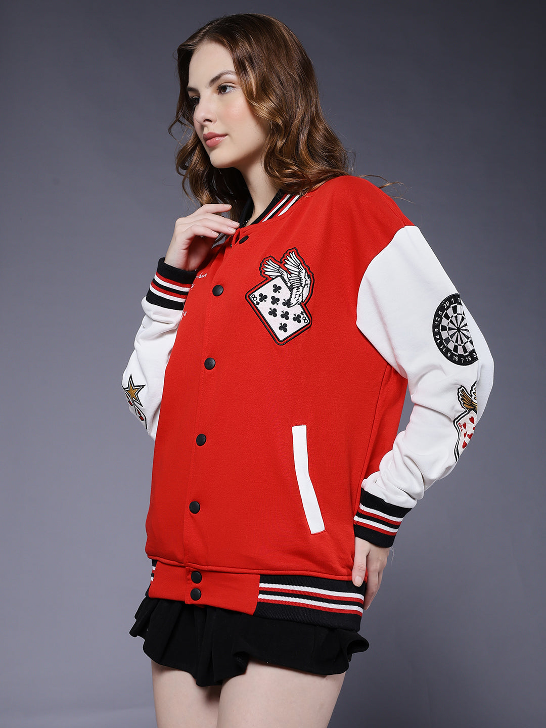 Upgrade your style with our premium Cards Women Varsity Embroidered Bomber Jacket. Designed for comfort and everyday wear.