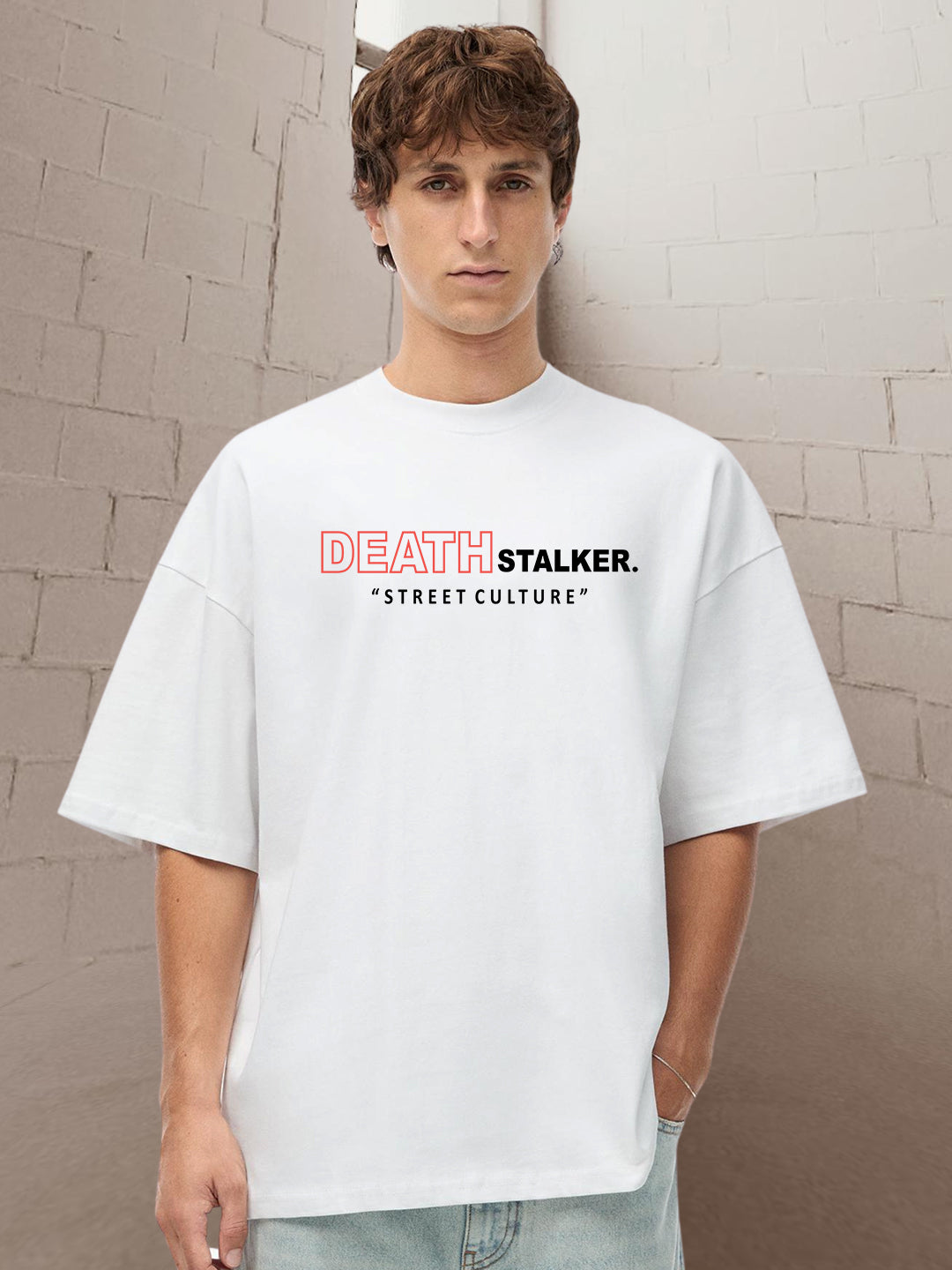 Product Description Half Sleeves Crew Neck 200 GSM Fabric Fit: Oversized Fit Fabric: 100% Premium Cotton | Sustainable 2X stronger cotton thread used Size: Model is wearing L size Country of Origin: Proudly Indian Washing Instructions: Machine wash. Do not iron directly or scrub on print. Dry on flat surface as hanging may cause measurement variations Color shown in the picture may vary from the actual product due to different lighting Product Description Buy the premium quality white color deathstalker men oversized printed t-shirt available in XS, S, M, L, XL, XXL size online from Pronk. Explore our vast range of men’s half sleeve T-shirts at Pronk India’s fastest growing fashion brand. Buy now!