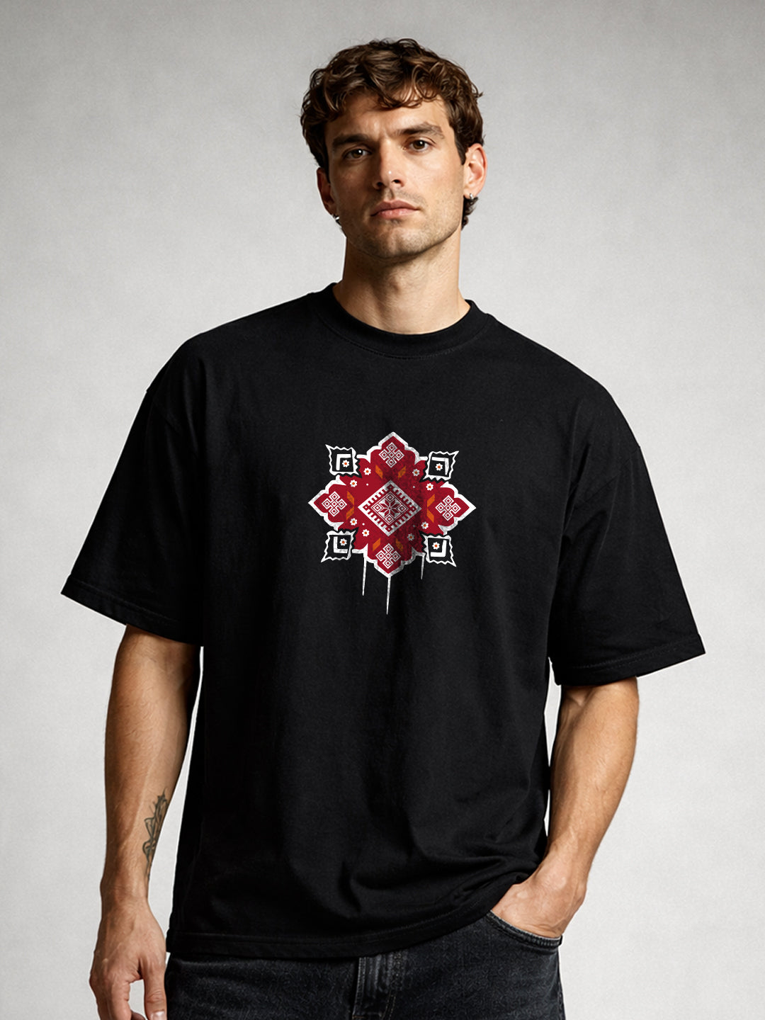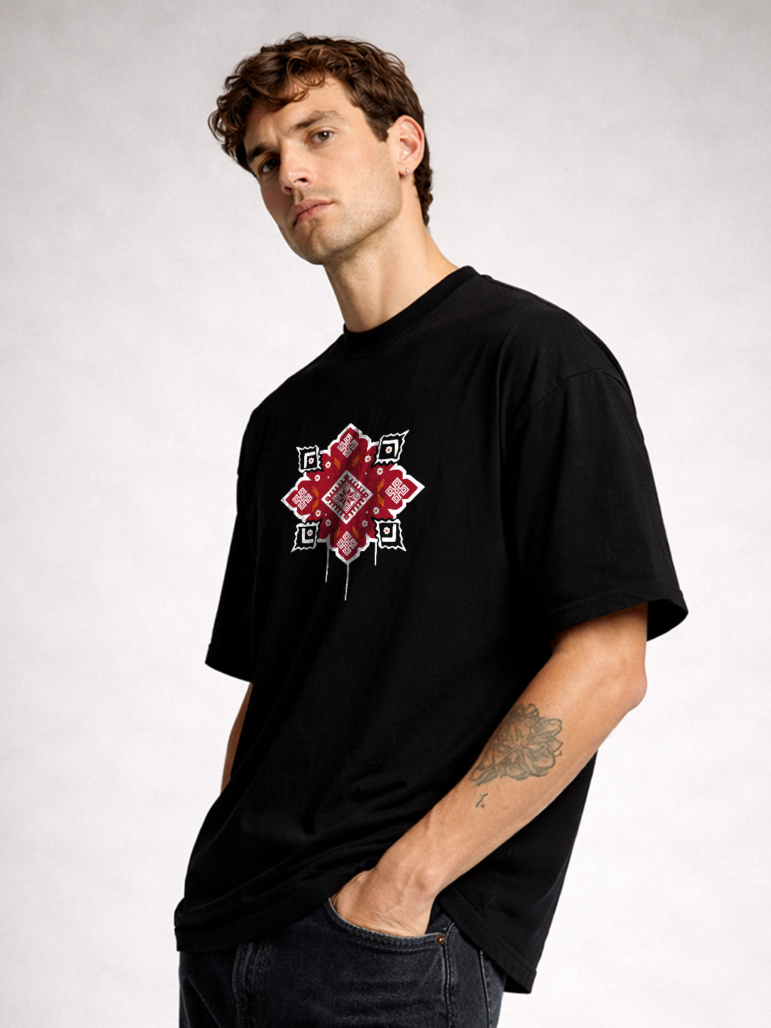 Upgrade your style with our premium FOLK MATRIX Men Terry Printed Oversized T-Shirt. Designed for comfort and everyday wear.