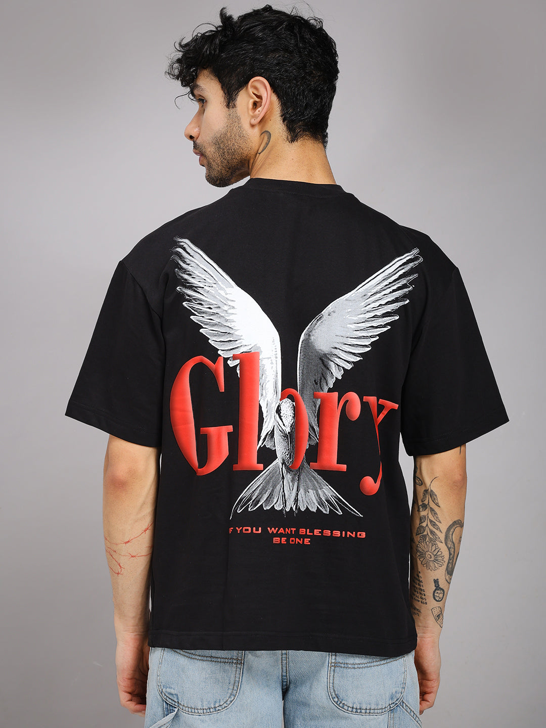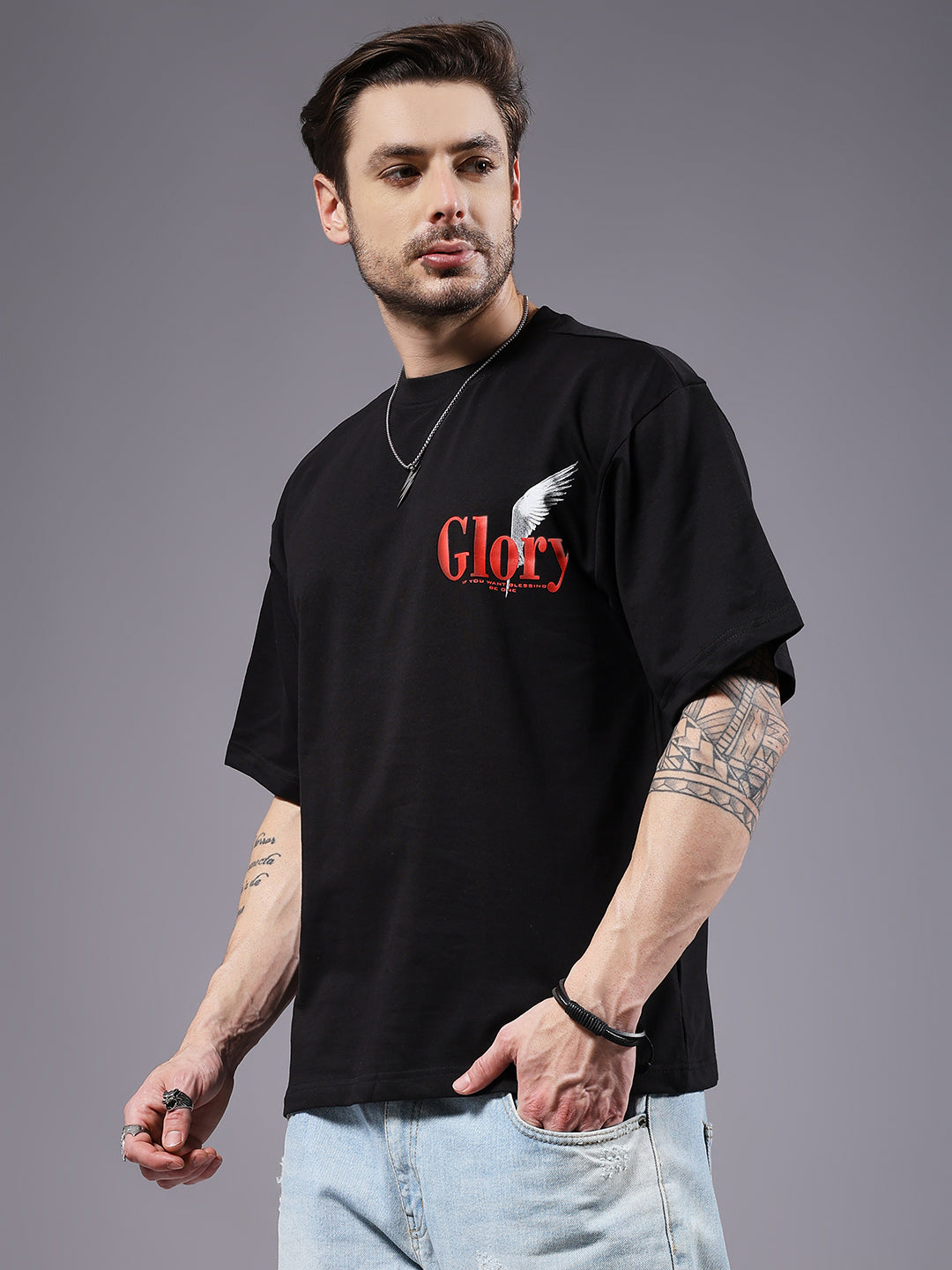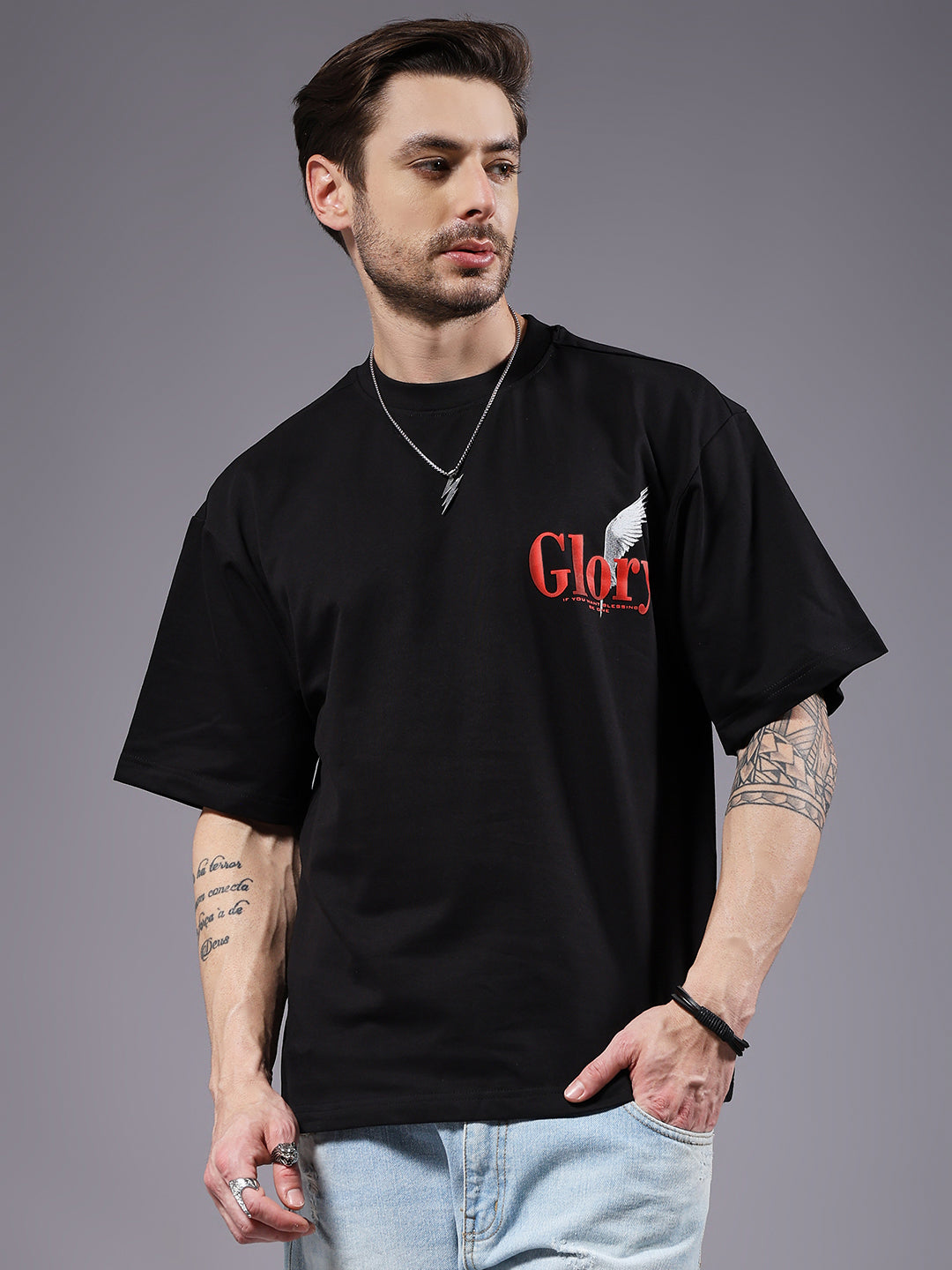 Product Description Half Sleeves Crew Neck 220 GSM Fabric Fit: Oversized Fit Fabric: 100% Terry Cotton Size: Model is wearing L size Country of Origin: Proudly Indian Washing Instructions: Machine wash. Do not iron directly or scrub on print. Dry on flat surface as hanging may cause measurement variations Color shown in the picture may vary from the actual product due to different lighting Product Description Buy a premium Glory Men Oversized Black T-Shirt at Pronk. Available in XS, S, M, L, XL, and XXL sizes. Explore the latest trendy designs in men’s oversized t-shirts. Shop online now!