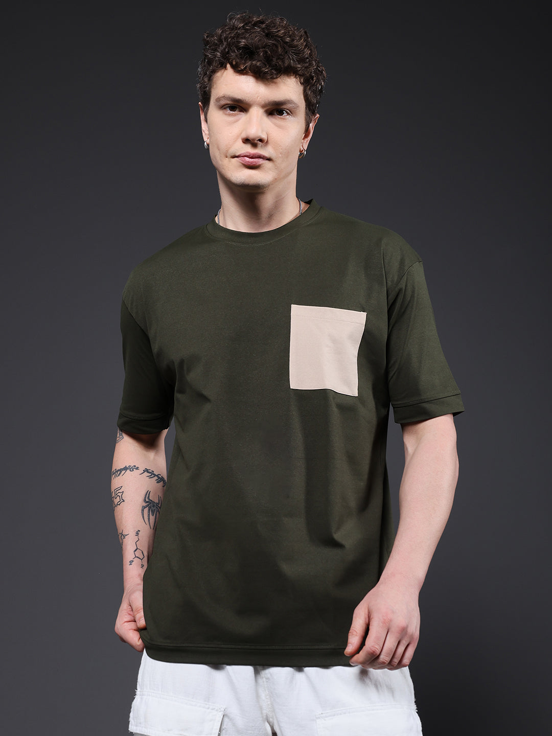 Product Description Half Sleeves Crew Neck Oversized Fit OXFORD / 100% Polyster  Solid with contrast pocket 180 GSM Fabric Size: Model is wearing L size Country of Origin: Proudly Indian Washing Instructions: Machine wash. Do not iron directly or scrub on print. Dry on flat surface as hanging may cause measurement variations Color shown in the picture may vary from the actual product due to different lighting Product Description Buy premium Men oversized t-shirt in olive green color at Pronk. Buy online at best price from Pronk. Shop now! Available in S, M, L, XL.