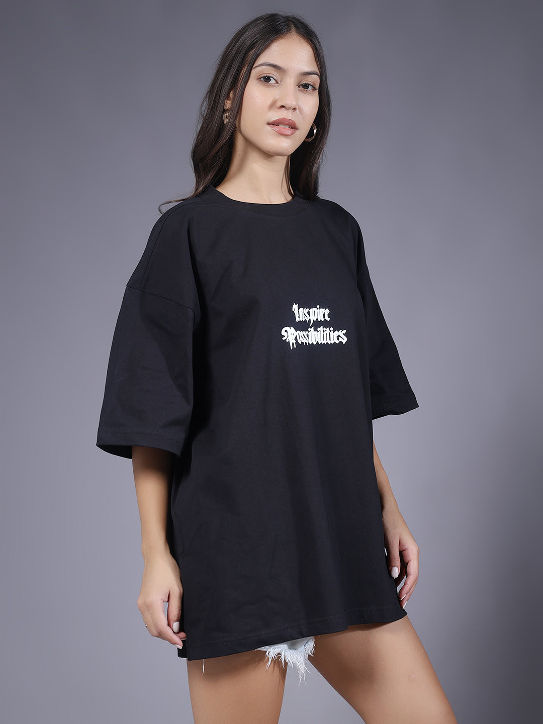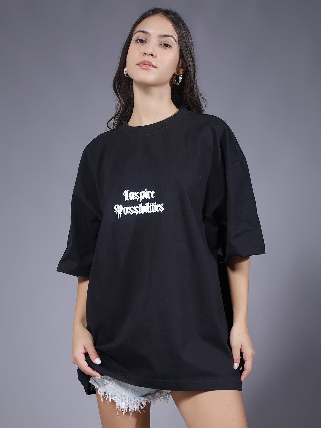 Upgrade your style with our premium Inspire Possibilities Puff Printed Women Oversized T-shirt. Designed for comfort and everyday wear.
