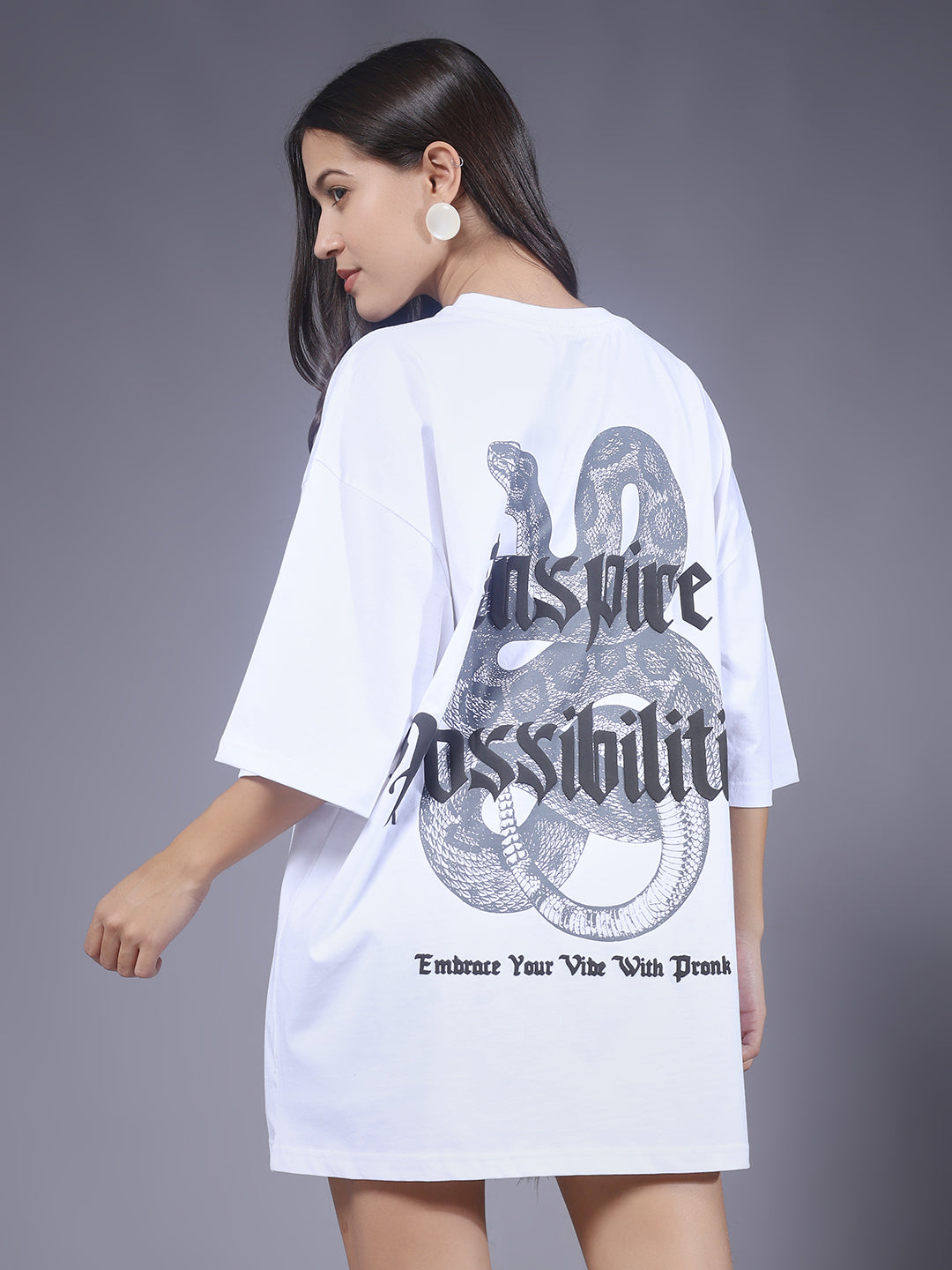 Upgrade your style with our premium Inspire Possibilities Puff Printed Women Oversized T-shirt. Designed for comfort and everyday wear.