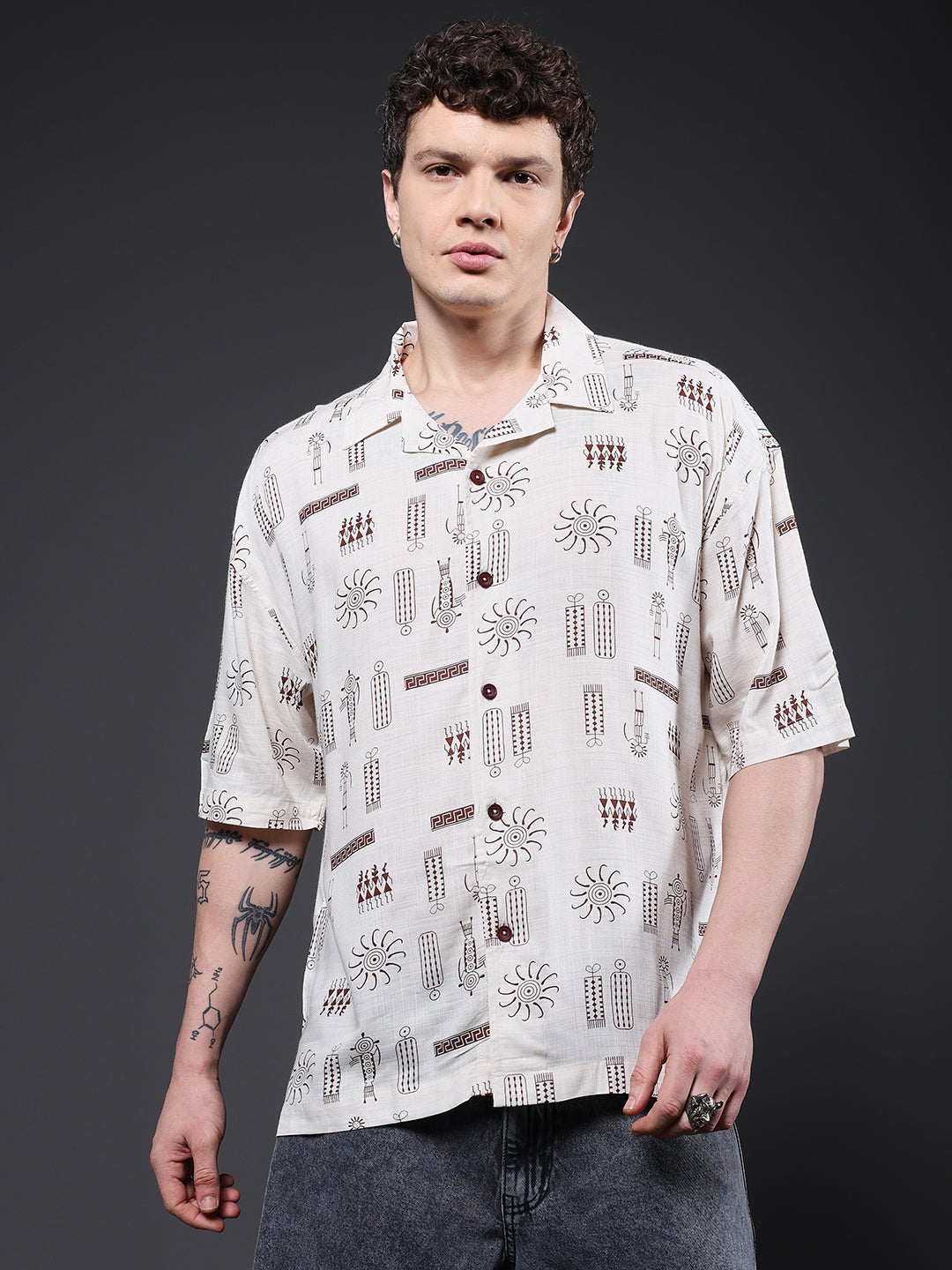 Stay cool and stylish with brown half sleeve shirt for men featuring relaxed fit and bold abstract design. Made from soft rayon fabric. it is perfect for casual wear or summer outings. Specifications Sleeve Type: Half Sleeve Fit: Relaxed Fit Pattern: Cityscapes Material: Rayon Fabric Neck Style: Cuban Collar Closure: Front Button-Down Size: Model is wearing L size Country of Origin: Proudly Indian Washing Instructions: Machine wash. Color shown in the picture may vary from the actual product due to different lighting Product Description Buy men’s half sleeve casual shirt online from PRONK. Available in XS to XL size. Choose from the wide collection of men’s half sleeve casual shirts.
