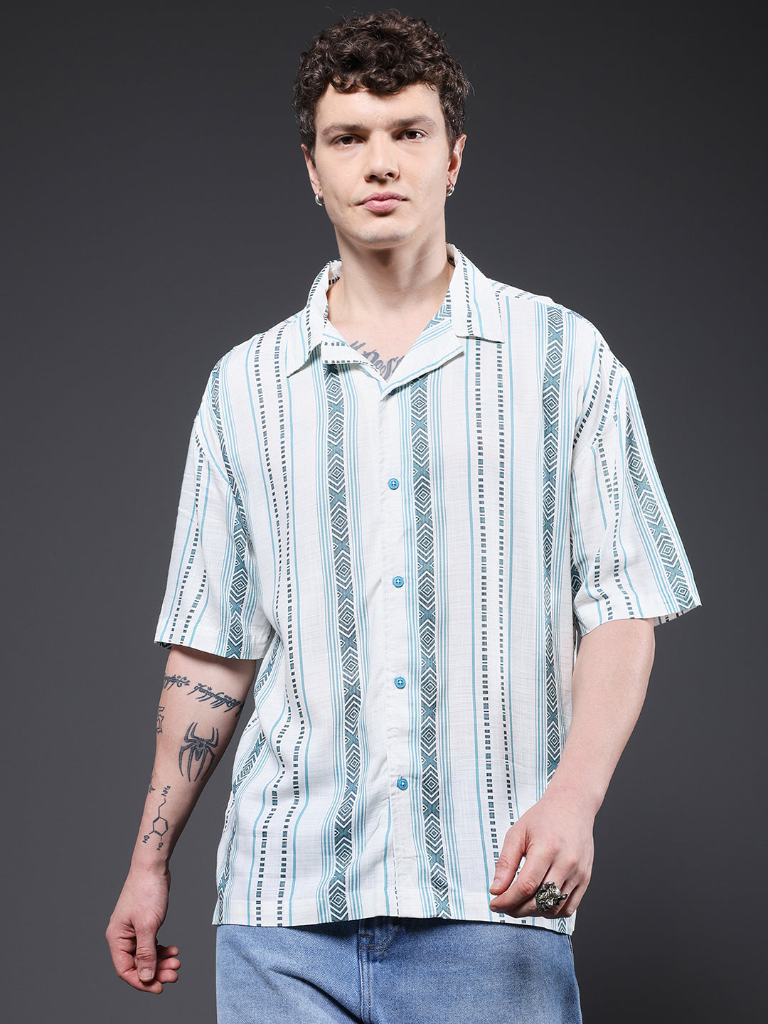 Stay cool and stylish with mint green half sleeve shirt for men featuring relaxed fit and bold abstract design. Made from soft rayon fabric. it is perfect for casual wear or summer outings. Specifications Sleeve Type: Half Sleeve Fit: Relaxed Fit Pattern: Vertical Stripes Material: Rayon Slub Fabric Neck Style: Cuban Collar Closure: Front Button-Down Size: Model is wearing L size Country of Origin: Proudly Indian Washing Instructions: Machine wash. Color shown in the picture may vary from the actual product due to different lighting Product Description Buy men’s half sleeve casual shirt online from PRONK. Available in XS to XL size. Choose from the wide collection of men’s half sleeve casual shirts.