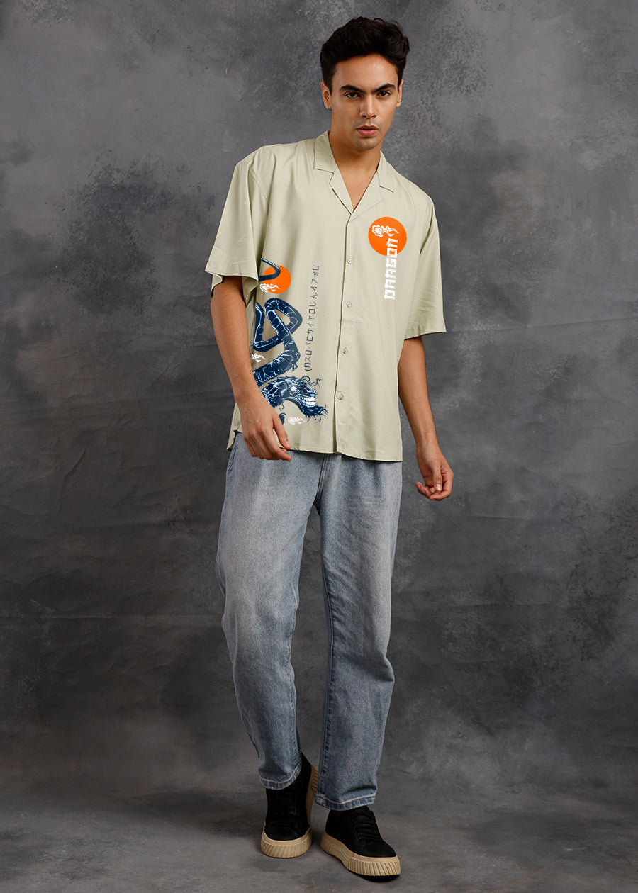 Half Sleeves Curved Bottom Hem Cuban Collar Country of Origin: Proudly Indian Fit:  Oversized Fit Fabric: Fluidic Fabric | Sustainable thread used Washing Instructions: Cold machine wash only, flat dry in shade, do not wring Color shown in the picture may vary from the actual product due to different lighting  Product Description Get white color Ruler Of Sky Mens Fluidic oversized shirt at the lowest price from Pronk. Choose from an extensive collection of men’s shirts. Available in xs, s, m, l, xl sizes. Get everything trendy. Shop now!