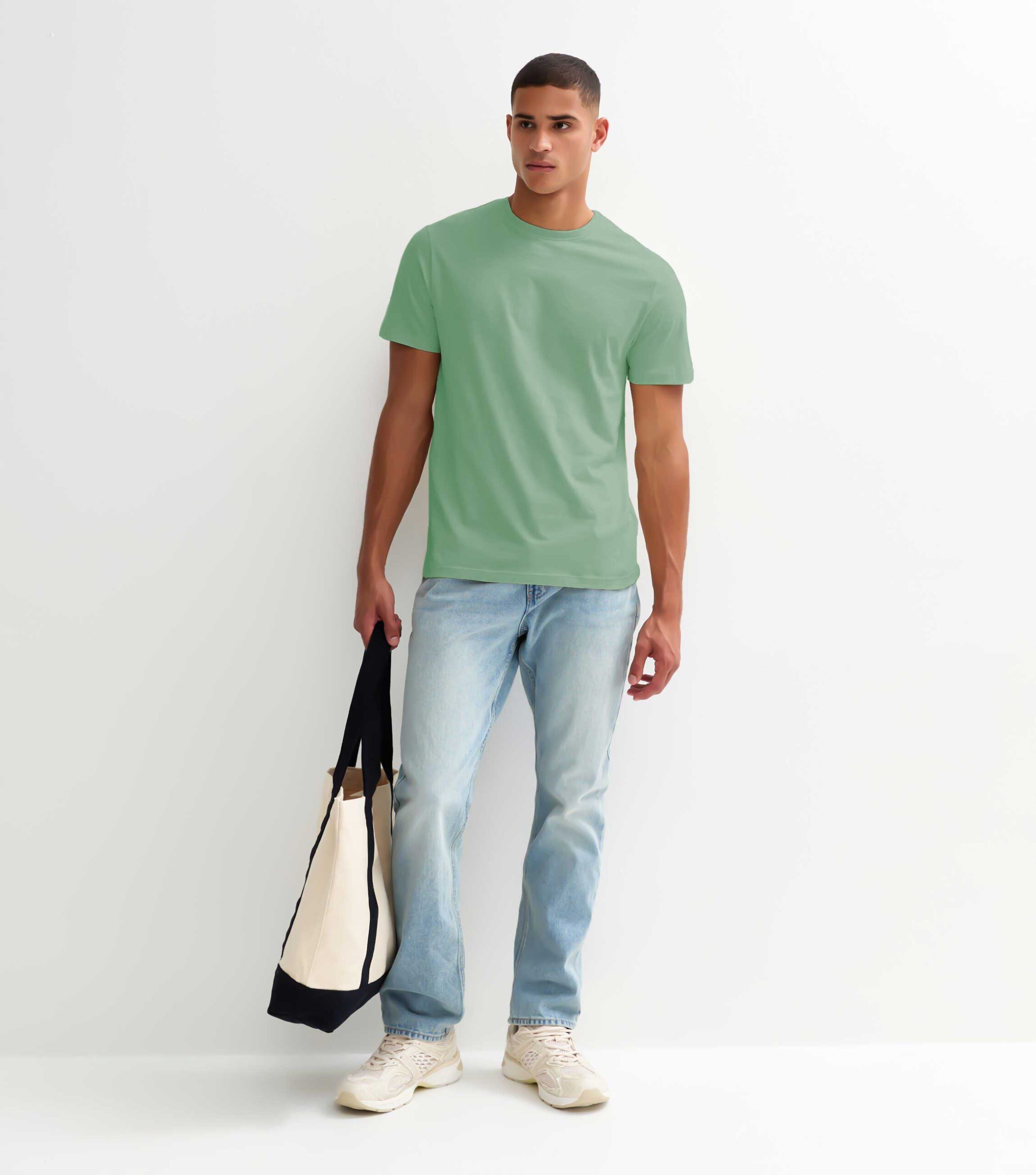 Upgrade your style with our premium Solid Men Half Sleeve T-Shirt – Mint Green. Designed for comfort and everyday wear.