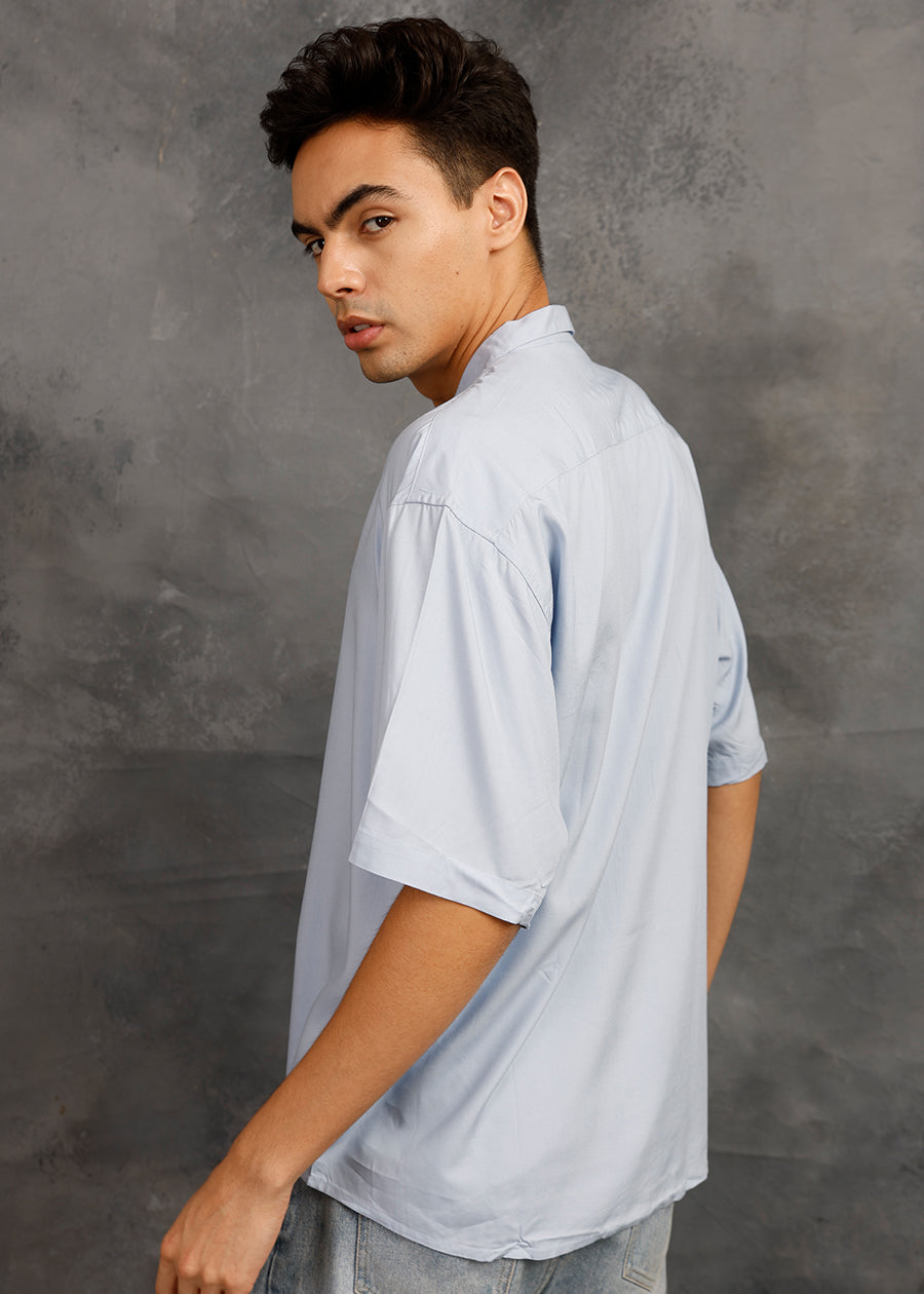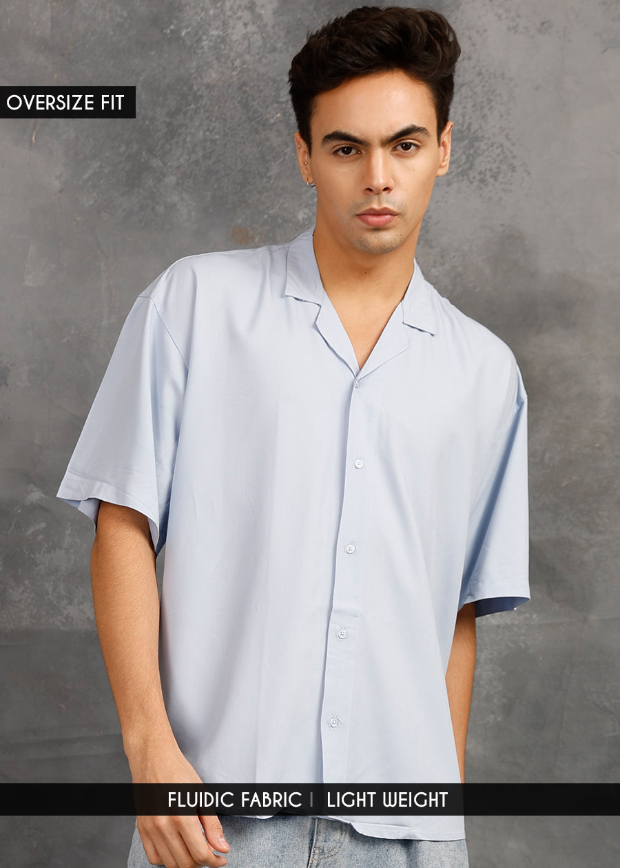 Upgrade your style with our premium Solid Mens Fluidic Oversized Shirt Sky. Designed for comfort and everyday wear.