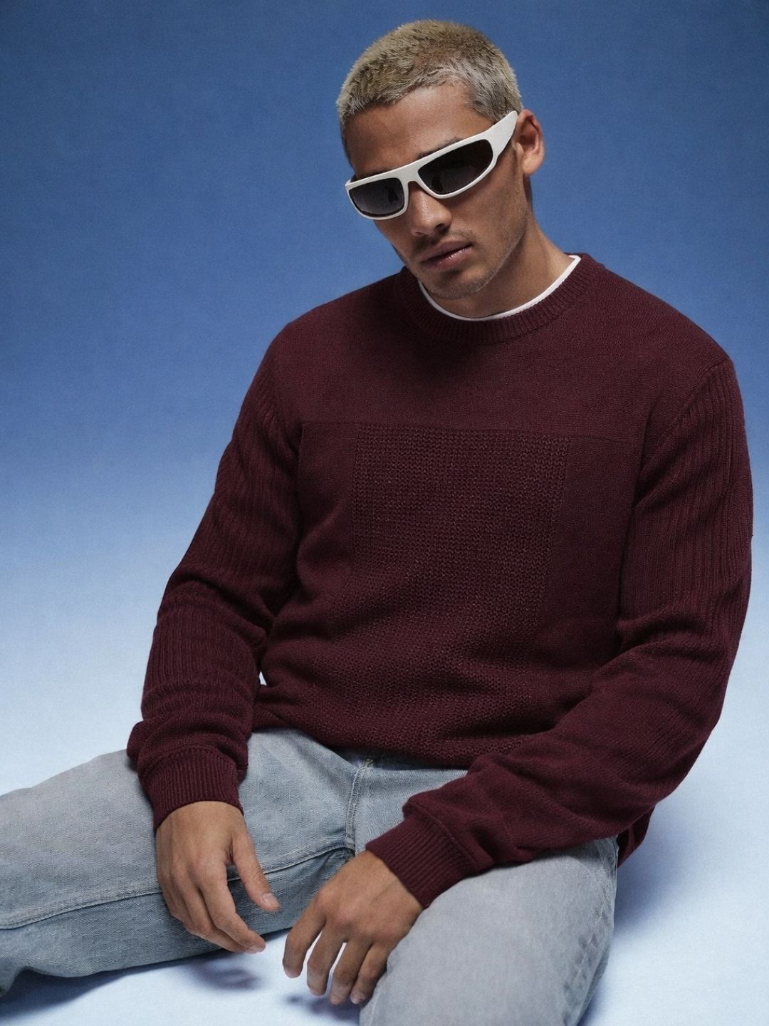 Product Description Soft acrylic fabric for all-day comfort Durable and easy to care for, ideal for daily wear Trendy design to complement any winter outfit Premium acrylic fabric for a soft, durable, and easy-to-maintain finish Material: Acrylic Size: Model is wearing L size Country of Origin: Proudly Indian Fit: Regular fit with ribbed cuffs and hem for added comfort and style. Design: Wine color base featuring trendy look. suitable for every fashion lover represent your self stylish and cool Why Choose This PulloverPerfect for layering over shirts or pairing with jeans for a casual yet refined outfit. Its minimalistic design with a hint of detail on the sleeve makes it suitable for work, outings, or lounging in style. Add this versatile pullover to your wardrobe today and experience unmatched comfort and elegance Washing Instructions: Machine wash. Do not iron directly . Dry on flat surface as hanging may cause measurement variations. Product Description Buy Mens Pullover in multiple color from Pronk online with free worldwide shipping. Choose from a wide range of Pullover for Mens Available in S,M,L,XL Shop now ! Color shown in the picture may vary from the actual product due to different lighting