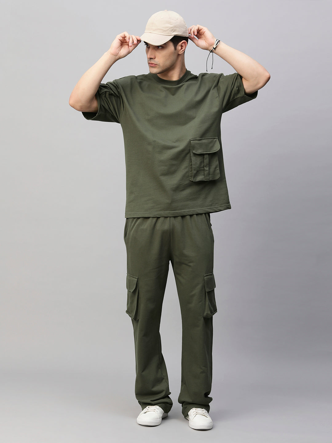 Streetwear Cargo Co-ord Set – Olive Green