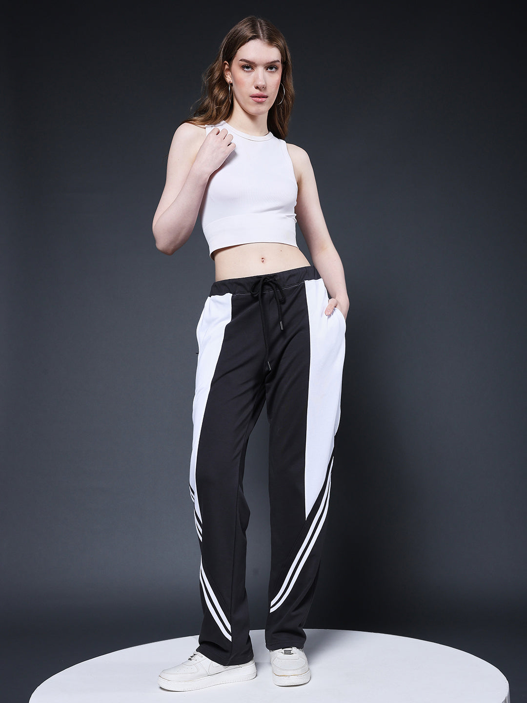 Stay comfortable and stylish with these dual-tone track pants featuring a sleek side stripe design. Made for both casual wear and light workouts.. Perfect for everyday use, travel, or lounging Specifications Occasion: Casual Outings, Travel Fit Type: Relaxed Fit Composition: 60% cotton 40% polyester Material: French Terry Waistband: Elastic with Adjustable Drawstring Length: Full Length Pockets: 2 Side Pockets including (one side zipper pocket) Size: Model is wearing L size Country of Origin: Proudly Indian Washing Instructions: Machine wash. Color shown in the picture may vary from the actual product due to different lighting Product Description Upgrade your style with PRONK’s dark grey color Women jogger. Available in S to XL size. Comfortable, trendy, and versatile bottomwear. Buy now!