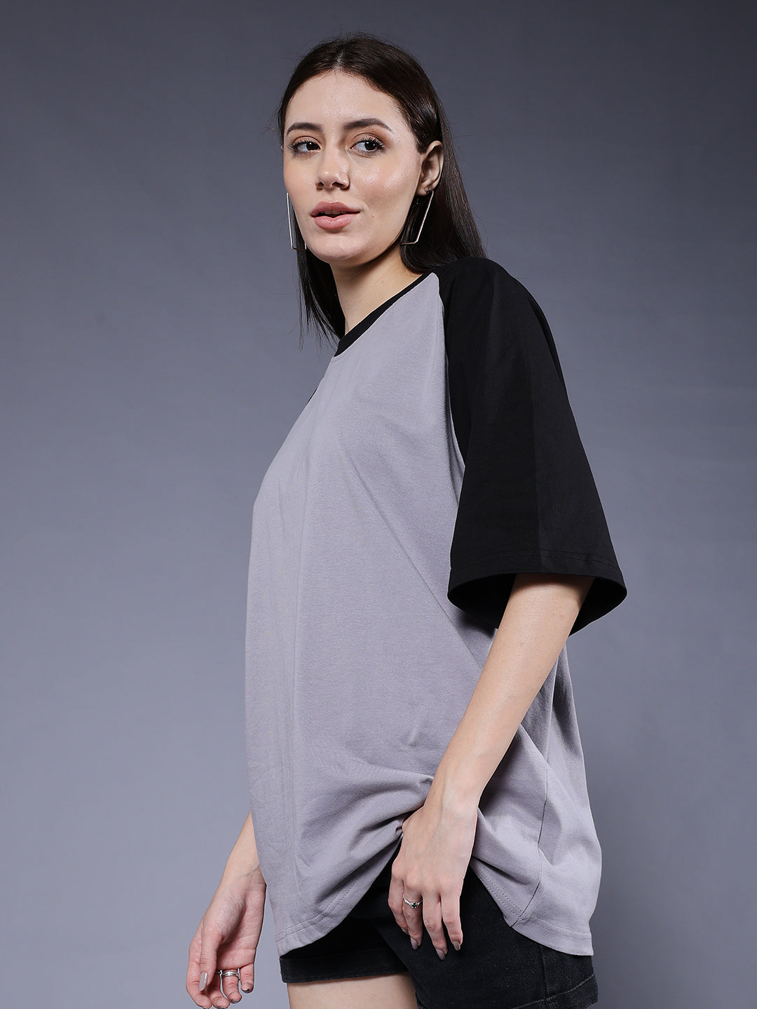 Product Description Women Oversized t-shirt with raglan sleeves and a relaxed fit for a trendy streetwear look. Crafted from soft and breathable fabric to keep you stylish and comfortable all day. Specifications Fit: Oversized Fit Pattern: Colorblock Material: 100% Cotton Neckline: Crew neck Sleeve Type: Half sleevesOccasion: Casual, streetwear Size: Model is wearing L size Country of Origin: Proudly Indian Washing Instructions: Machine wash cold, do not bleach Color shown in the picture may vary from the actual product due to different lighting