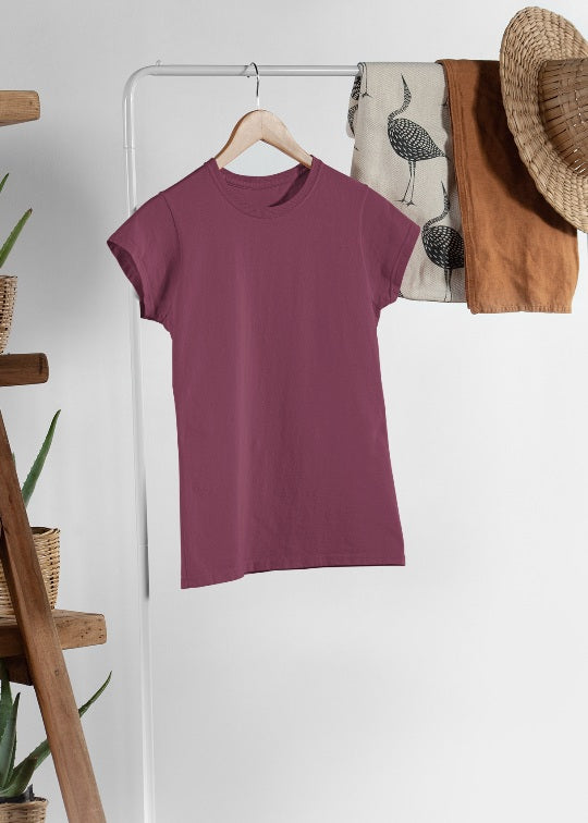 Upgrade your style with our premium Women Solid Half Sleeve T-Shirt – Wine. Designed for comfort and everyday wear.